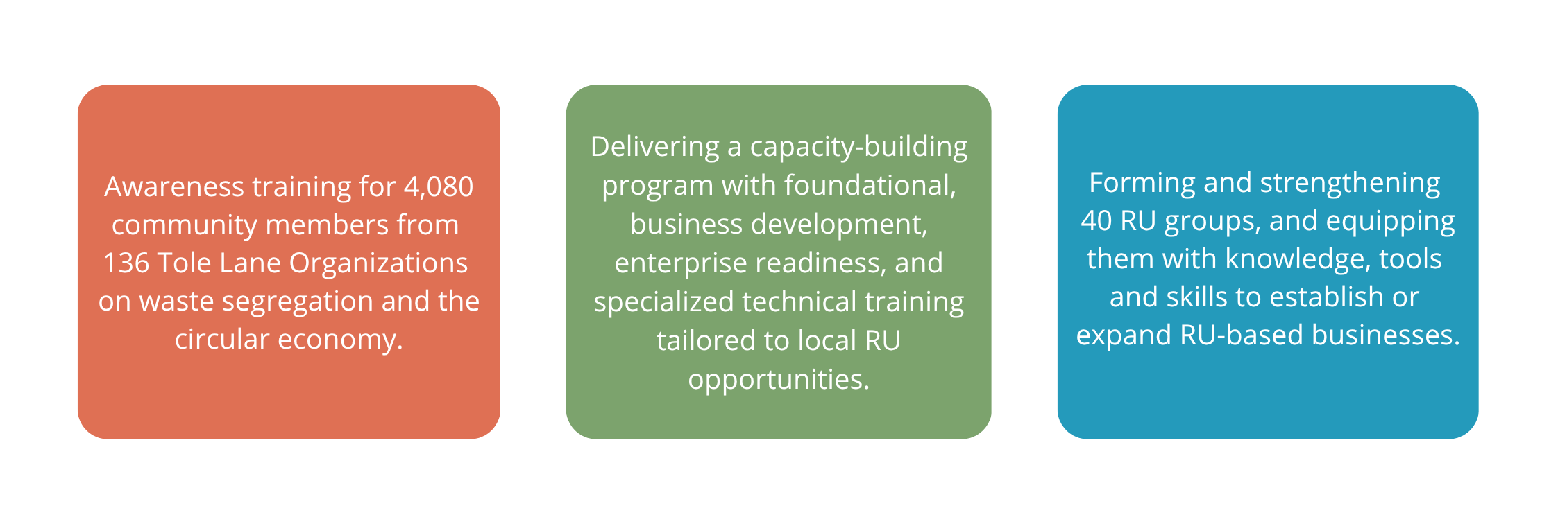 RU enterprise groups: 136 community-led groups participate in bootcamps and are incubated to develop viable RU businesses